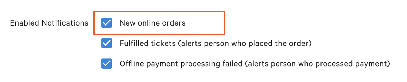 Enable on-screen notifications for when new online orders are received by following these steps: