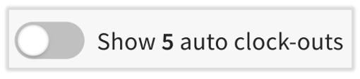 您可以在 Toast Web 的时间记录管理报告中轻松找到已自动打卡下班的员工的时间记录。页面顶部的切换开关将列出所选时间段和门店内有多少员工已自动打卡下班。启用此切换开关,仅查看自动打卡下班的员工班次。