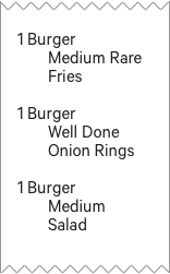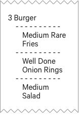 例如,如果您的菜单上有“早餐组合 #1”,其中包含鸡蛋的样式、肉类选择和烤面包类型,您可以将这些修改项直接传送到特定的备餐站。鸡蛋在备餐站会显示为“炒鸡蛋”,但没有父项(“早餐组合 #1”)显示在票上。
