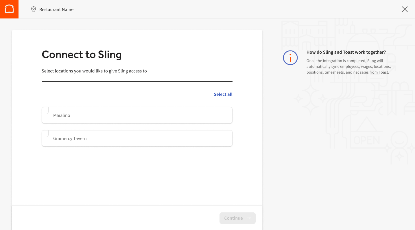 找到关于向您的Sling账户添加额外位置以进行Toast集成的指导。
