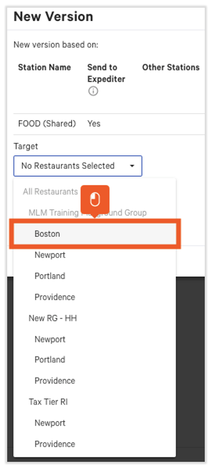 下。然后选择您希望添加版本的位置 - 在此示例中为波士顿。然后选择