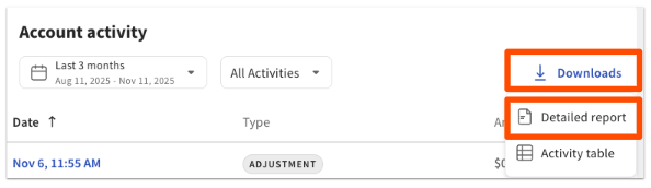 当您刷新页面时,应付金额调整将作为“调整”出现在《账户活动》表中。