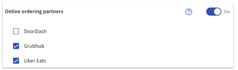 目前,合作伙伴特定可见性适用于直接在线订购集成(Grubhub、Uber Eats和DoorDash)以及其他几个集成合作伙伴。Toast正在努力尽快包括所有在线订购合作伙伴,因此如果您有尚未在合作伙伴特定可见性设置中可用的集成,请告知他们可以稍后查看更新。 对于尚未使用新配置的合作伙伴,您仍然可以选择复选框(例如,对于Olo,他们可以选中Olo框或取消选中),而第三方菜单不会发生任何变化。请联系合作伙伴以获取迁移状态的更新。