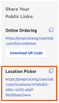 注意: 如果您有多个地点使用 Toast 线上点餐,请输入您的 Toast 线上点餐位置选择链接。这将使您的客人能够选择离他们最近的地点提交订单。