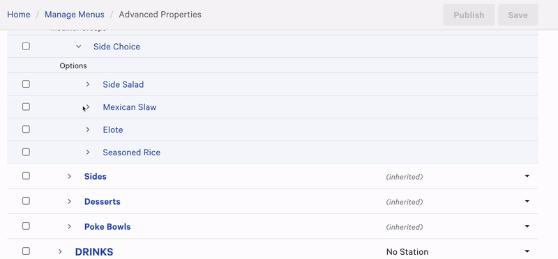 请考虑,如果您的修饰符有进一步的自定义,也称为嵌套修饰符,它们将在备餐站的修饰符项下方显示(例如,上述示例中的Chipotle Ranch酱)。
