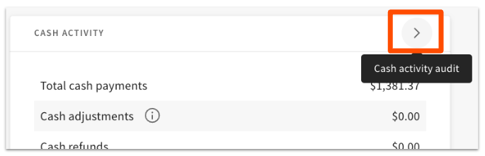 | 现金活动摘要 | 显示现金支付总额、调整、退款、收到小费前的现金余额、信用卡/非现金小费、预扣的小费和现金总额。此卡片直接链接到现金活动审核报告。 |