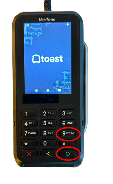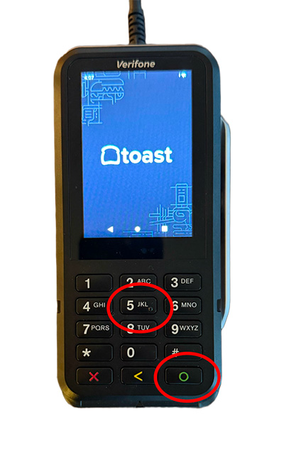 在读卡器的主屏幕上,选择5按钮,然后选择绿色圆圈按钮。