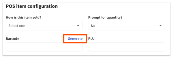 在项目详细信息页面的POS配置部分,选择生成,位于条形码字段旁边。