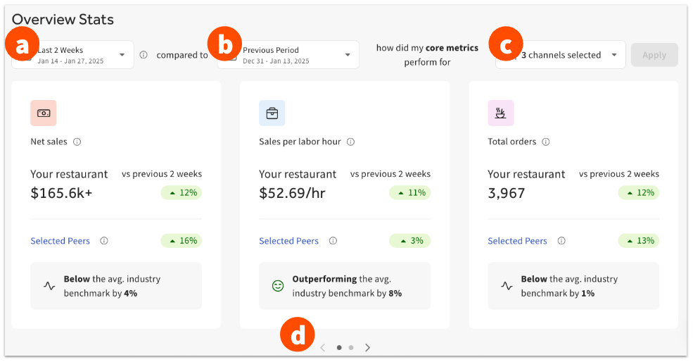 “餐厅概览”选项卡将显示您与所选同行组中其他餐厅的比较。