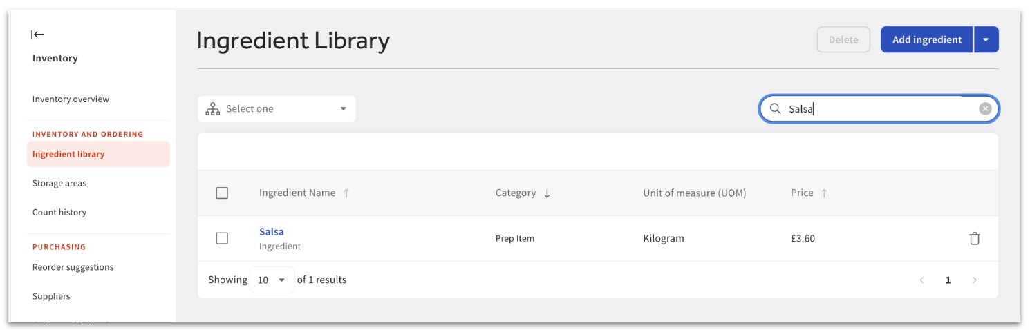 预制食谱设置完成后,将以库存单品的形式显示在食材库中。您在此处记录批次的生产情况,以确保库存水平准确无误。如需详细了解预制食谱,请参阅 ⁇ Toast 库存:食谱入门(加拿大、爱尔兰和英国)