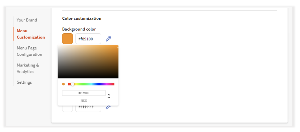 Toast 线上点餐专业版的另一个好处是,它允许您选择特定的颜色来定制您的品牌页面。
