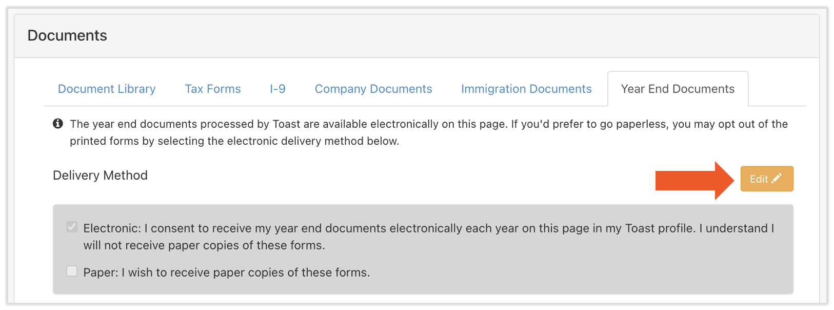 2026 年 1 月 19 日或之后,员工可以在 Toast 薪资管理系统中访问其 W-2 表格。出于安全原因(社会保障号显示在 W-2 表格上),Toast 薪资管理系统无法向员工电子邮箱或家庭地址发送 W-2 表格。