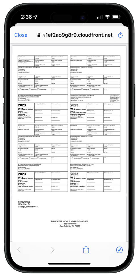 2026 年 1 月 19 日或之后,员工可以使用 MyToast 应用访问他们的 W-2 表格。表格准备好后,您甚至会收到通知,以便尽快提交申报。出于安全原因(社会保障号显示在 W-2 表格上),Toast 薪资管理系统无法向员工电子邮箱或家庭地址发送 W-2 表格。