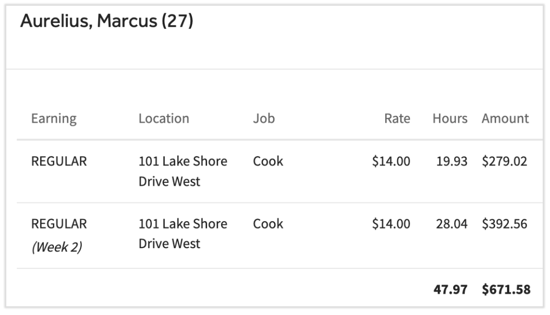 为了报告此数字,Toast 薪资管理系统需要记录每周的工时。如果您的发薪频率为双周或半月,则输入的 2026 工资工时将发生变化:员工工时将按周列出,而不是按薪资周期列出。您可能会发现在“、您的和上,员工工时显示方式发生了变化。