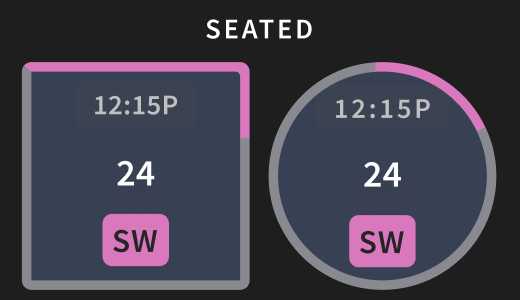 进度条:您为桌位安排客人后,该桌位周围的进度条将根据 Toast Web 设置中与该用餐团体人数对应的翻台时间开始推进(在“餐厅设置”内的“翻台时间”下)。