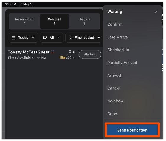 全新!实时等待时长:现在,当您将客人添加到等候名单,或查看等候名单预订详情时,将看到客人在线等待时长的实时预览。该预览反映了客人在加入等候名单时,通过短信链接看到的时间范围。