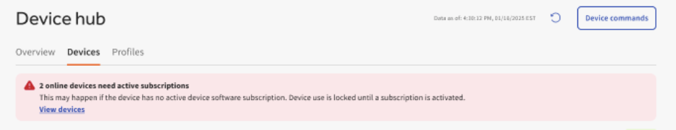 您可以在 设备中心 中激活您的设备订阅,通过选择 激活 在所选设备的 设备软件订阅 下。