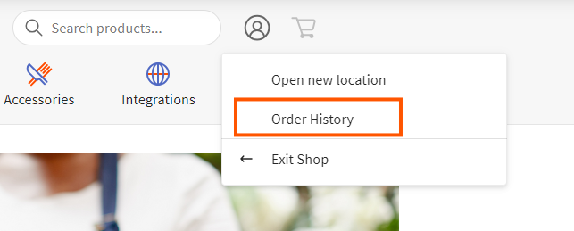 您可以通过打开“账户”菜单(位于 Toast 店铺页面顶部的搜索栏旁边)并选择“订单历史”,来访问您的订单历史。