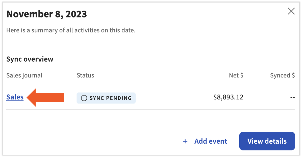In the same way, you may view your sales audit trail. If your data is successfully synced to Intacct, the journal entry will appear in green. If any errors occur in data sync, it will appear in red. Select the Notifications button from the upper-right corner of the page to view more about this error.