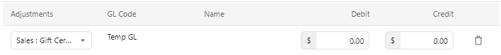 You'll first need to select the adjustment type (the first drop-down menu). Once added, you'll see the GL Code associated with the adjustment. Next, add a Debit or Credit amount.