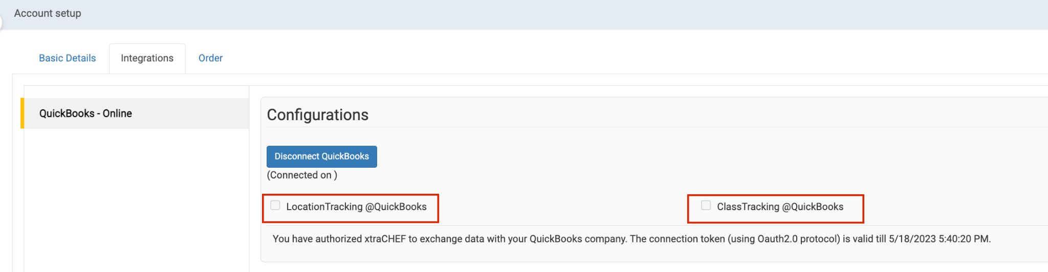 了解如何在 xtraCHEF 中设置 QuickBooks 类或位置跟踪设置。
